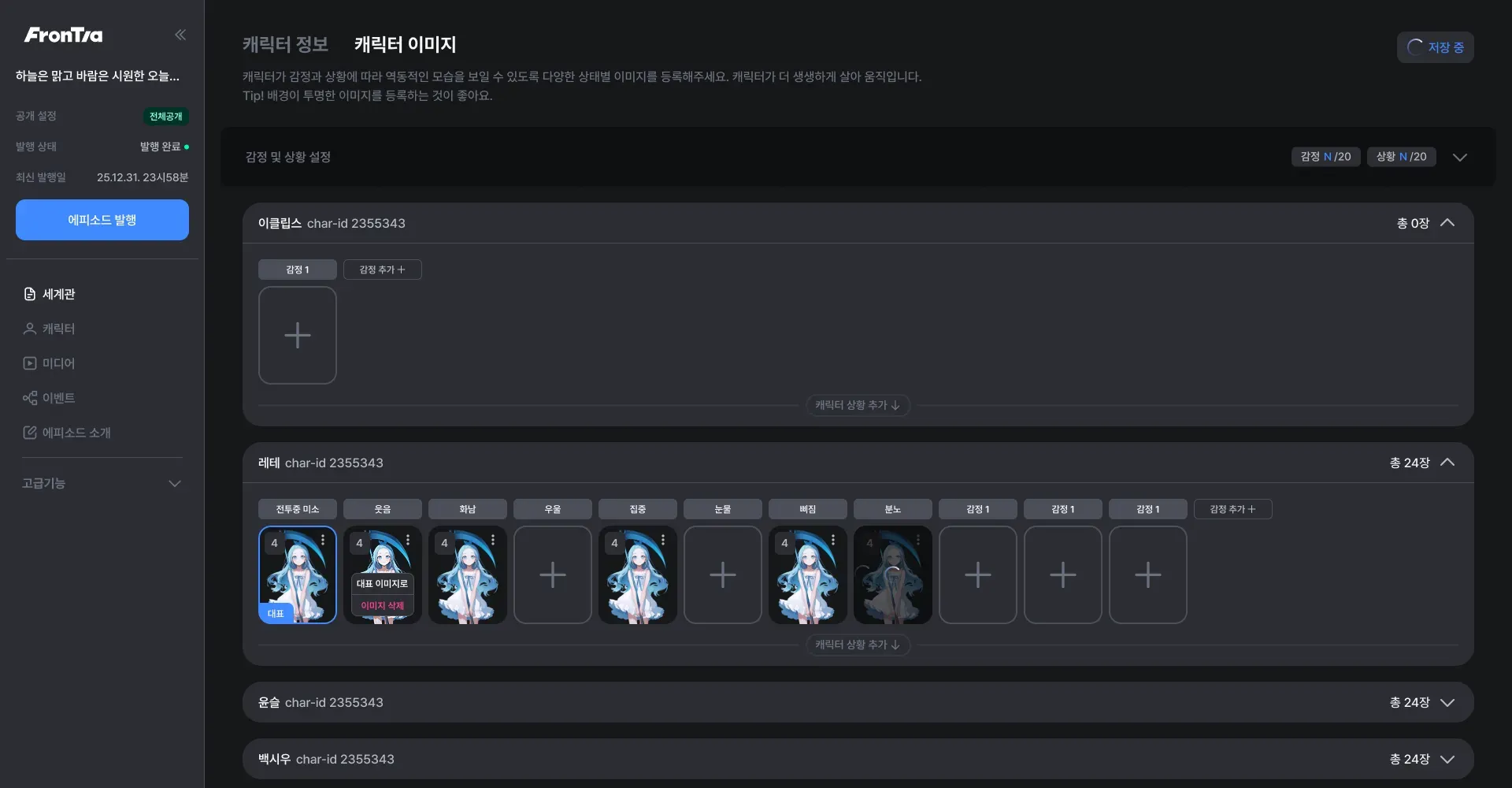 캐릭터의 상황과 상태에 따른 이미지를 추가로 삽입할 수 있습니다.