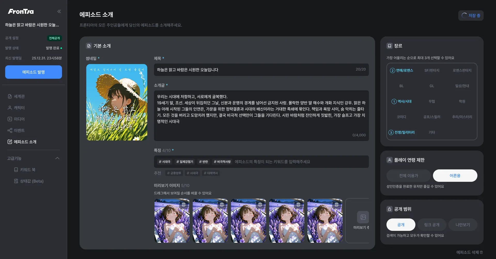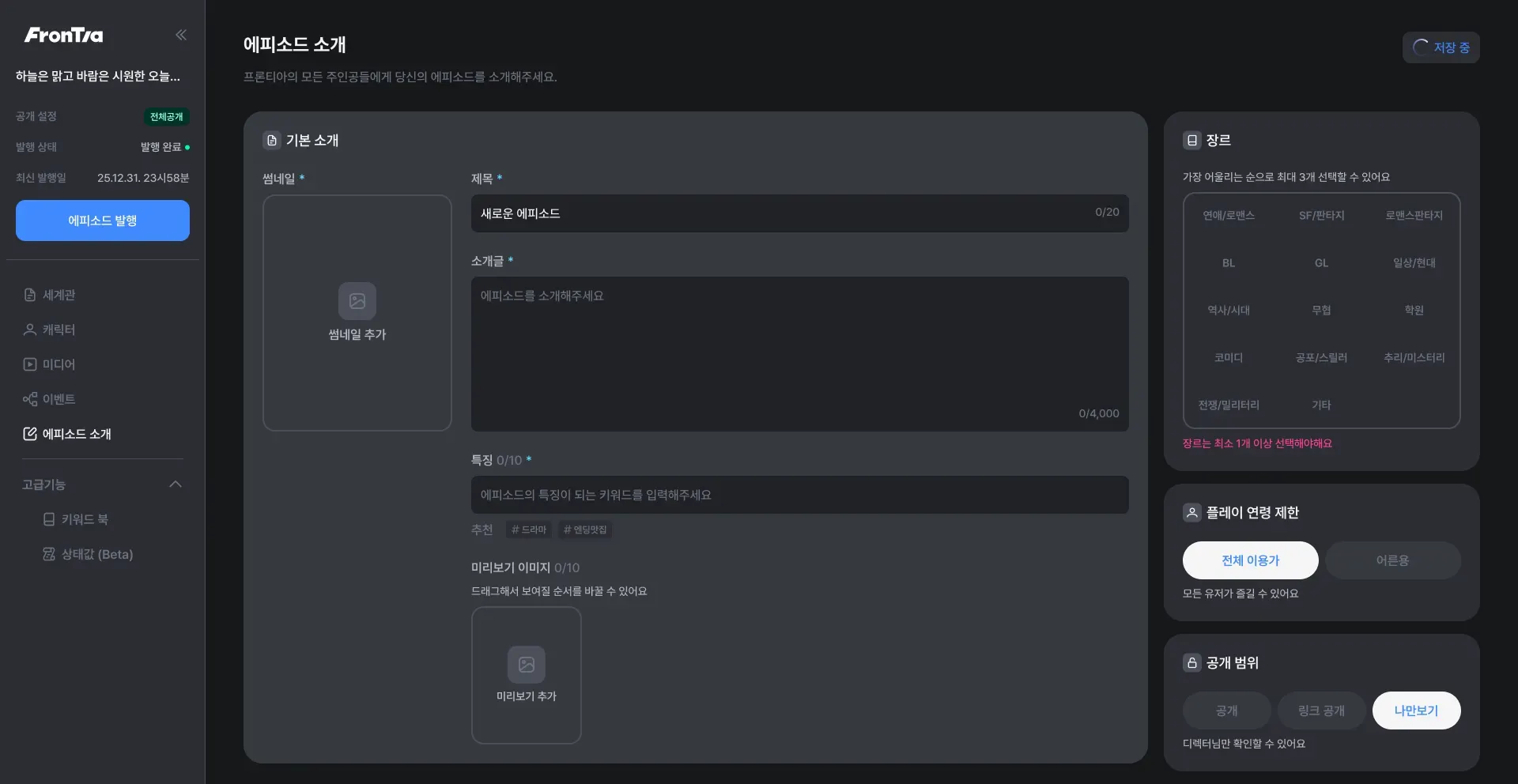 이곳에 입력하는 정보들은 프론티아 앱의 홈 화면, 검색 결과 등에서 플레이어에게 그대로 노출됩니다.
