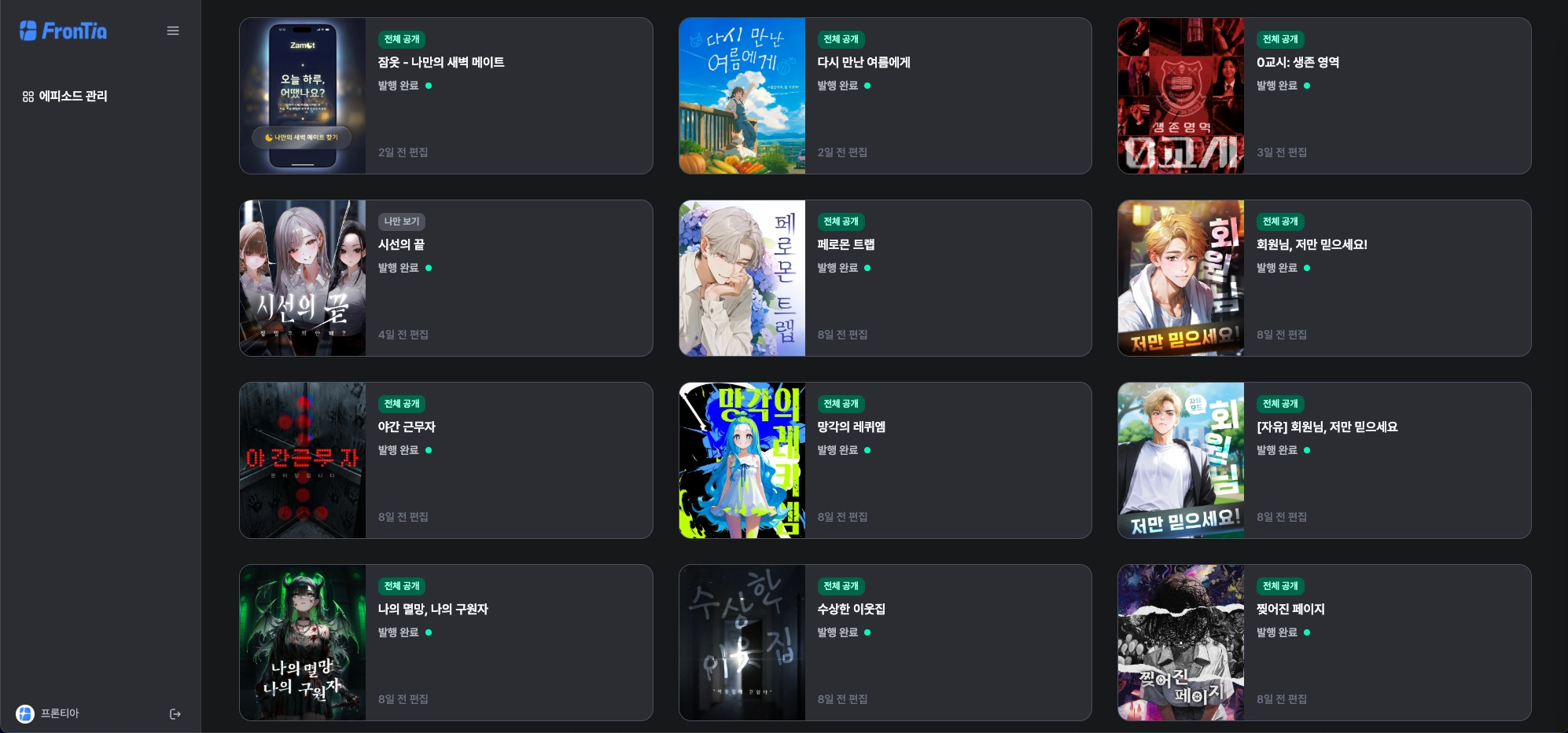 누구나 프론티아의 디렉터로서 에피소드를 제작하고 발행할 수 있고,