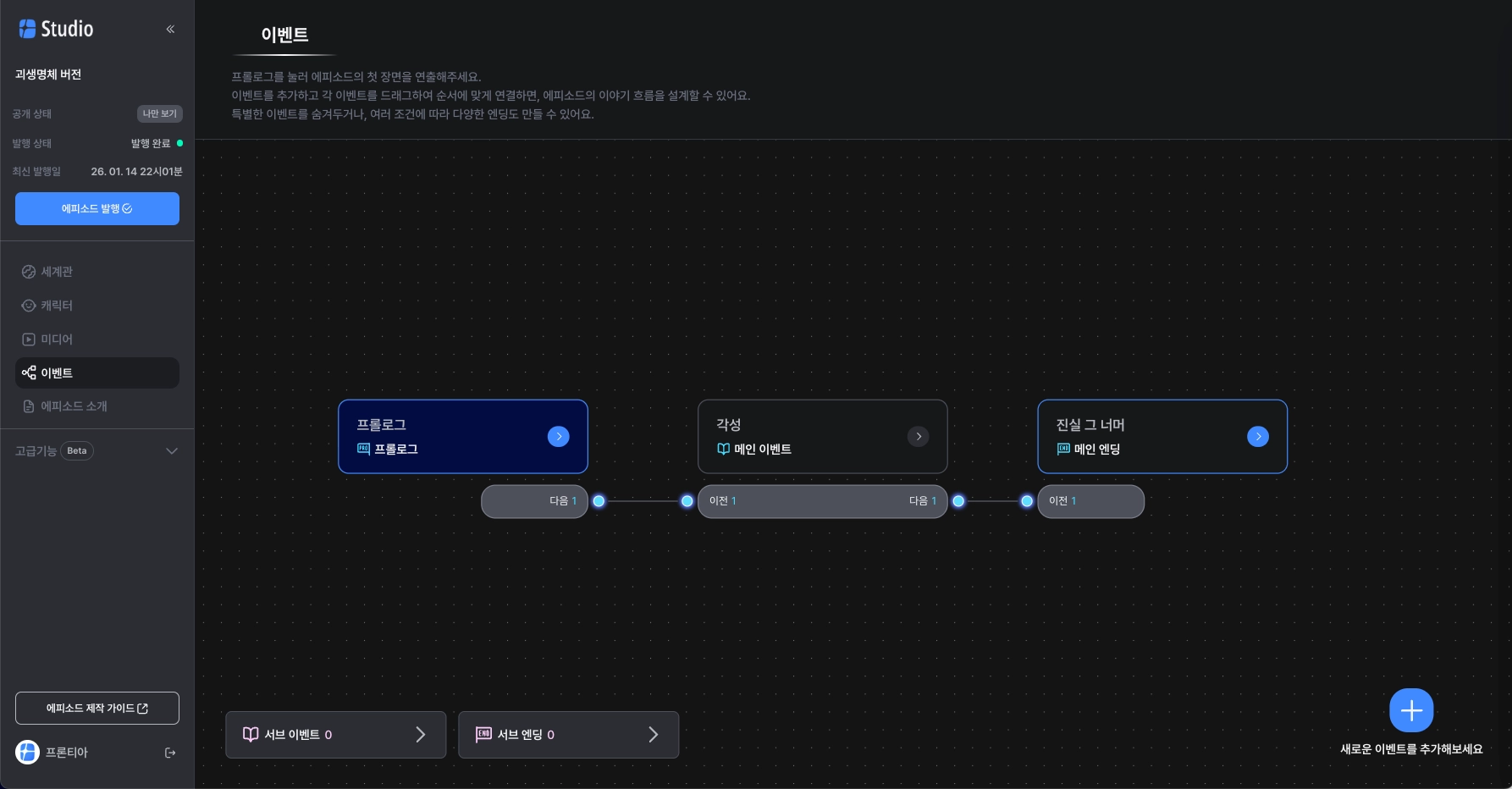 에피소드에서 주인공이 겪을 주요 이벤트를 배치하는 곳이에요.